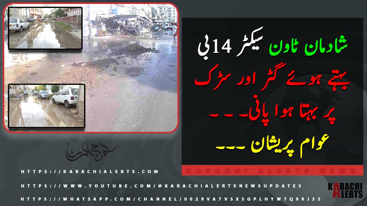 شادمان ٹاون پوست آفس فلیٹ پر گٹر لائین خراب ہونے کی وجہ سے گٹر کا پانی سڑک پر کھڑا ہے۔ سندھ گورمنٹ فلیٹ کے پاس بھی گٹر لائین کا مسلہ موجود ہے۔