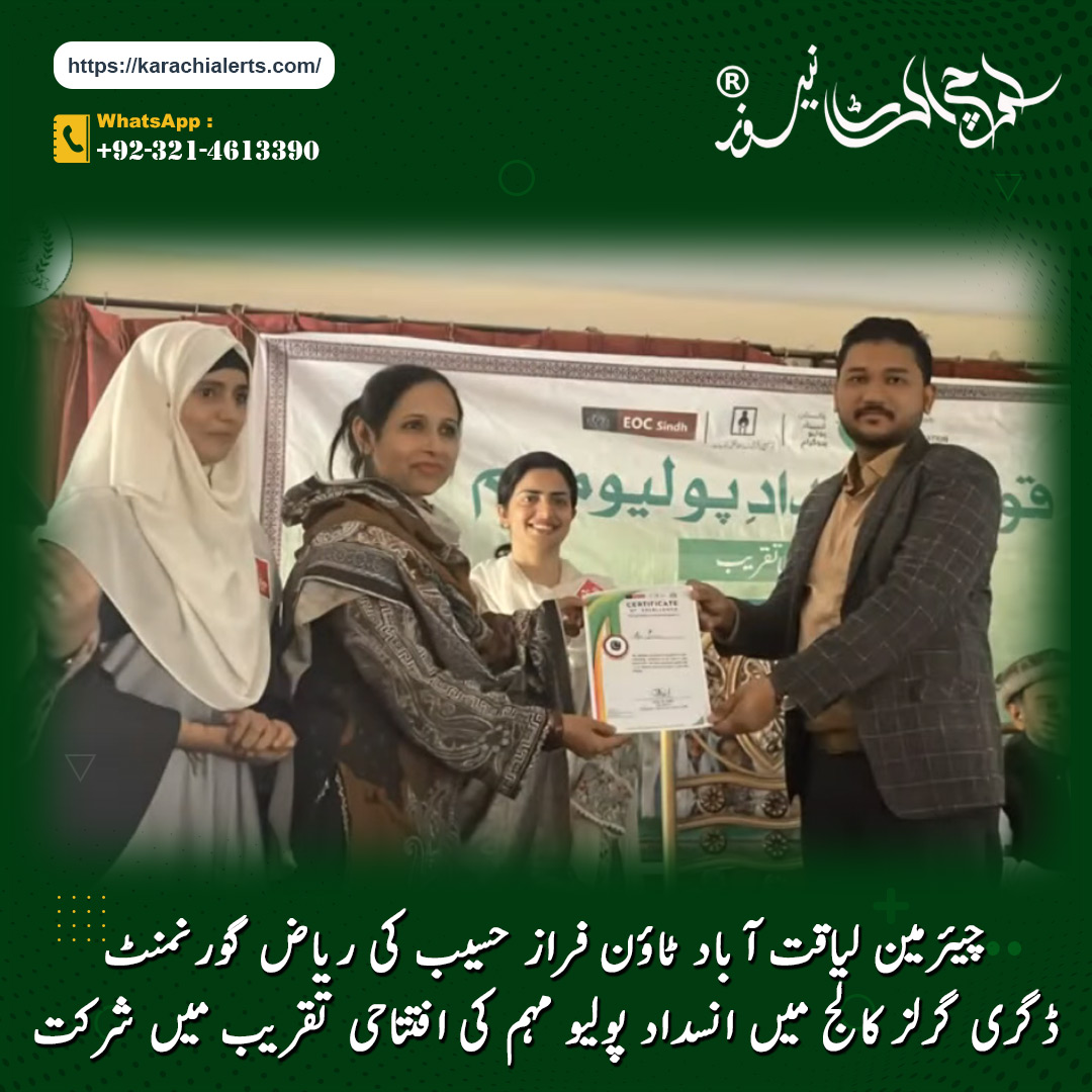 چیئرمین لیاقت آباد ٹاؤن فراز حسیب کی ریاض گورنمنٹ ڈگری گرلز کالج میں انسداد پولیو مہم کی افتتاحی تقریب میں شرکت