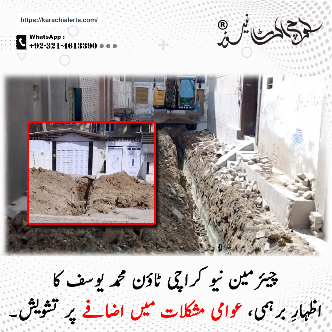 اس موقع پر چیئرمین نیو کراچی ٹاؤن محمد یوسف نے شدید برہمی کا اظہار کرتے ہوئے کہا کہ نیو کراچی ٹاؤن انتظامیہ ایک ہزار گلیوں کے منصوبے کے تحت علاقے کی پسماندگی ختم کرنے کے لیے دن رات کام کر رہی ہے۔