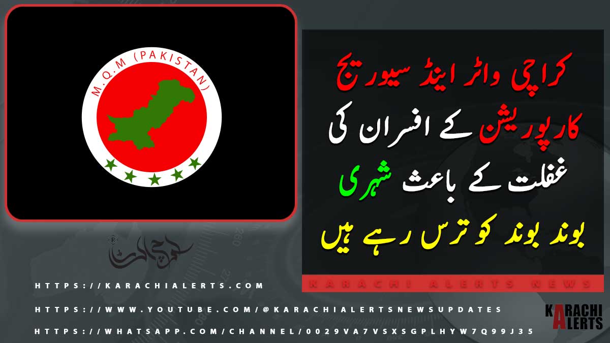 کراچی واٹر اینڈ سیوریج کارپوریشن کے افسران کی غفلت کے باعث شہری بوند بوند کو ترس رہے ہیں۔ حق پرست اراکینِ سندھ اسمبلی