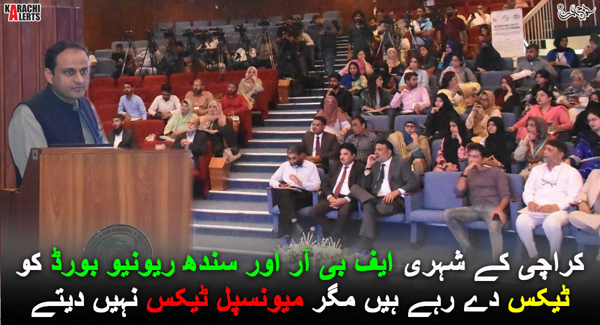 کراچی پاکستان کا معاشی حب ہے اور ملک کا سب سے زیادہ ٹیکس ہم دیتے ہیں۔کراچی کے شہری ایف بی آر اور سندھ ریونیو بورڈ کو ٹیکس دے رہے ہیں مگر میونسپل ٹیکس نہیں دیتے۔کراچی سالانہ ایک اعشاریہ 6 ارب روپے پراپرٹی ٹیکس دیتا ہے جبکہ میونسپلٹی ٹیکس صرف 20 کروڑ وصول ہوتا ہے۔
