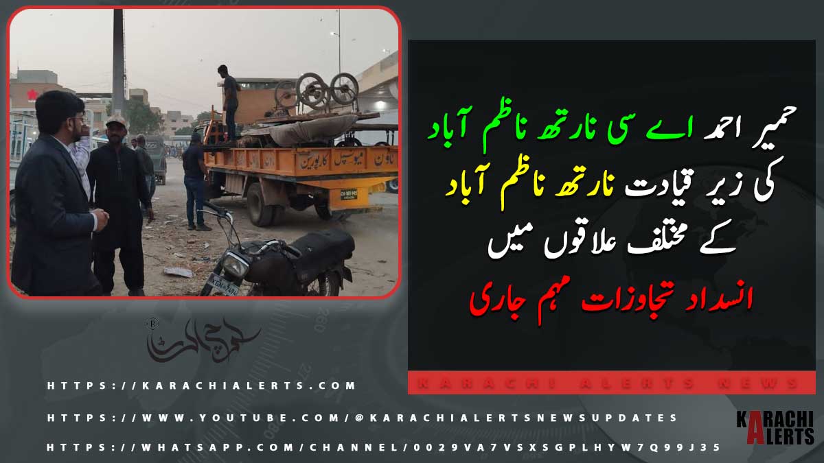 حمیر احمد اے سی نارتھ ناظم آباد کی زیر قیادت نارتھ ناظم آباد کے مختلف علاقوں میں انسداد تجاوزات مہم جاری
