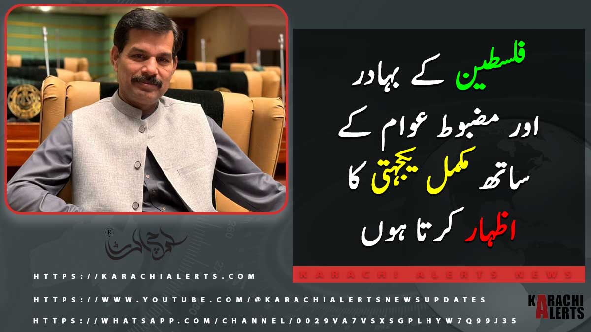 فلسطین کے بہادر اور مضبوط عوام کے ساتھ مکمل یکجہتی کا اظہار کرتا ہوں۔ ریحان اکرم