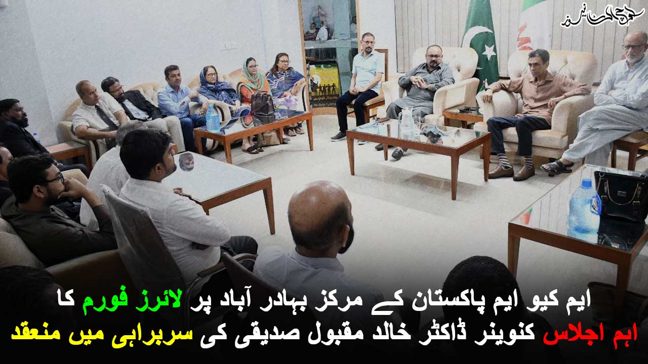 کراچی : متحدہ قومی موومنٹ پاکستان کے مرکز بہادر آباد پر لائرز فورم کا اہم اجلاس کنوینر ڈاکٹر خالد مقبول صدیقی کی سربراہی میں منعقد کیا گیا۔