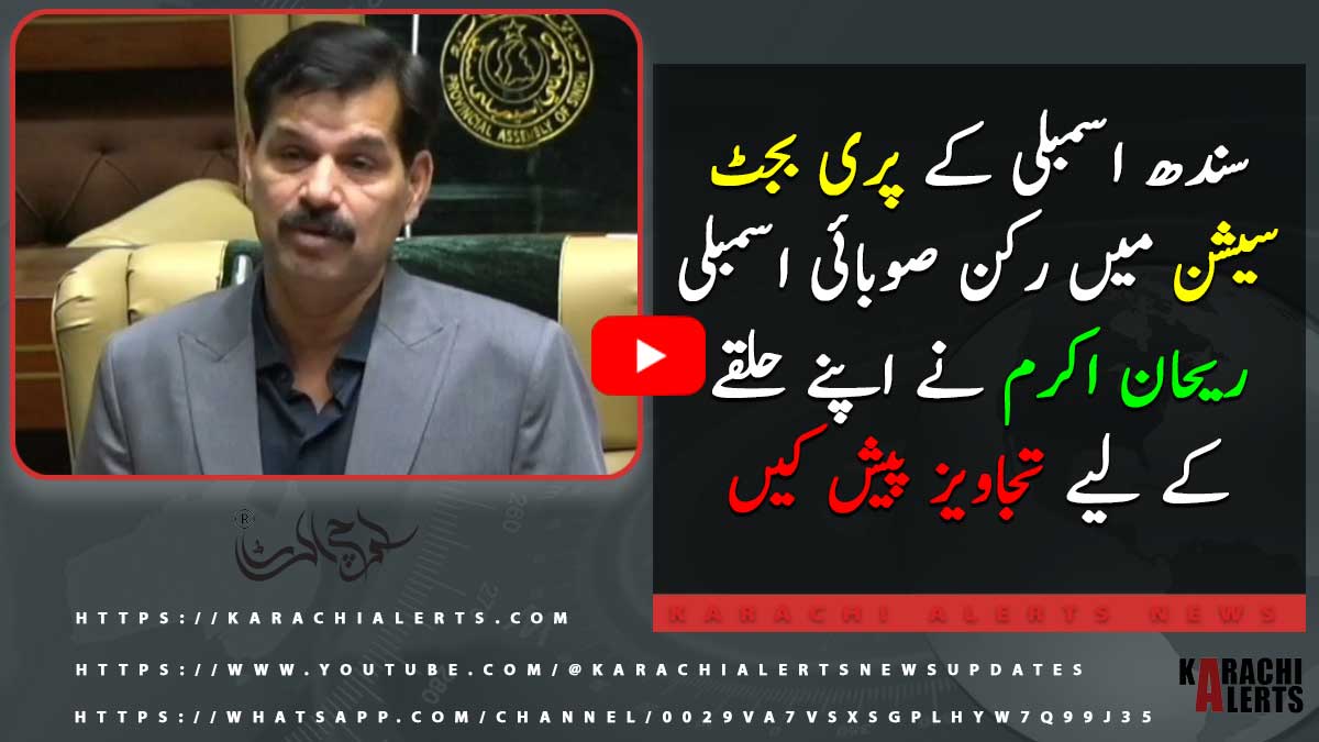 سندھ اسمبلی کےپری بجٹ سیشن میں حق پرست رکن صوبائی اسمبلی ریحان اکرم نے اپنے حلقے کےلیے تجاویز پیش کیں