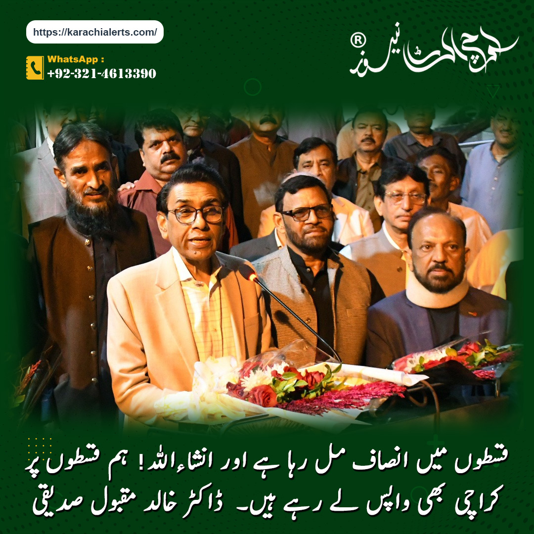 قسطوں میں انصاف مل رہا ہے اور انشاءاللہ! ہم قسطوں پر کراچی بھی واپس لے رہے ہیں۔ ڈاکٹر خالد مقبول صدیقی