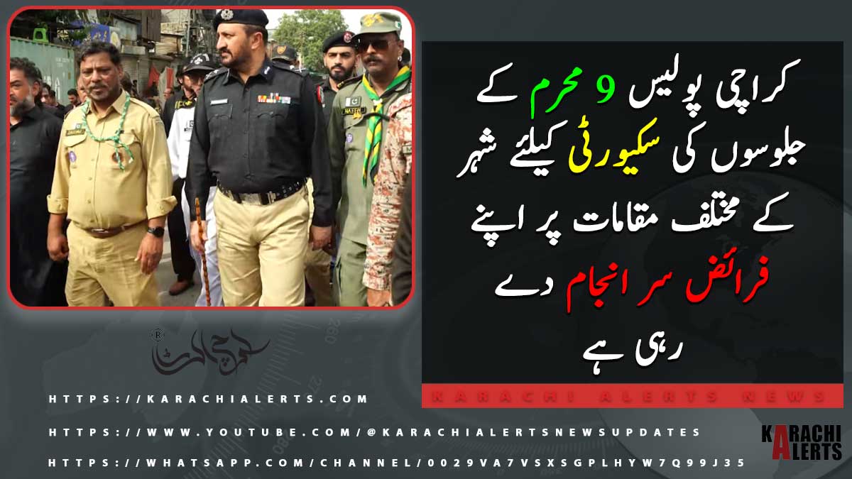 کراچی پولیس 09 محرم کے جلوسوں کی سکیورٹی کیلئے شہر کے مختلف مقامات پر اپنے فرائض سر انجام دے رہی ہے۔