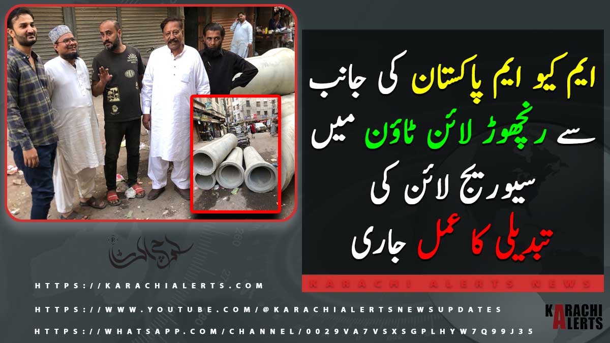 ایم کیو ایم پاکستان کی جانب سے رنچھوڑ لائن ٹاؤن میں سیوریج لائن کی تبدیلی کا عمل جاری