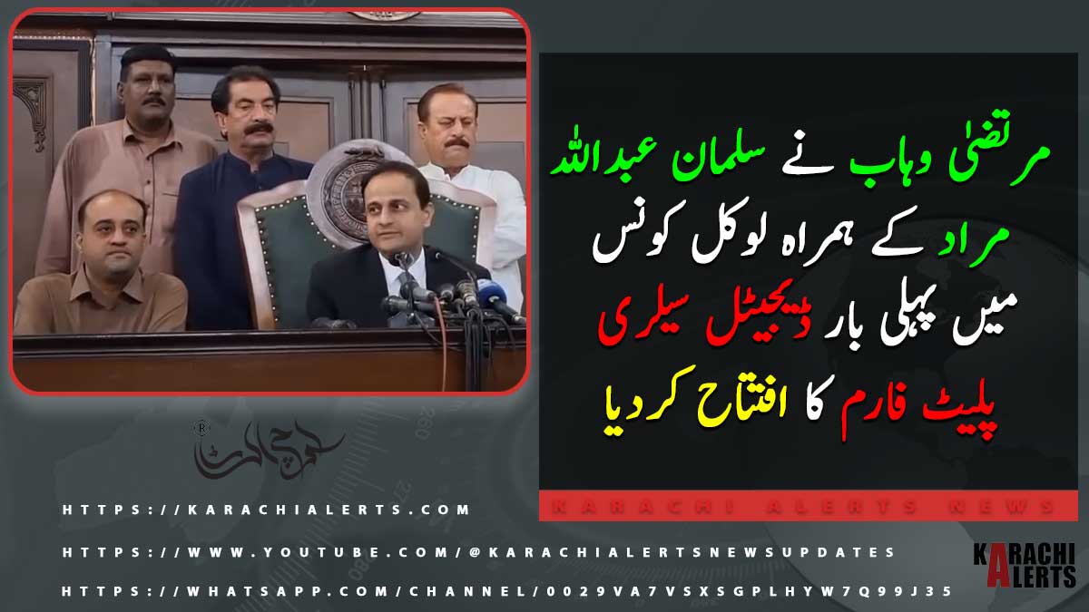 میئر کراچی بیرسٹر مرتضیٰ وہاب نے ڈپٹی میئر سلمان عبداللہ مراد کے ہمراہ لوکل کونسل میں پہلی بار ڈیجیٹل سیلری پلیٹ فارم کا افتتاح کر دیا — شفافیت اور جدید سہولیات کی فراہمی کی جانب ایک اہم قدم۔
