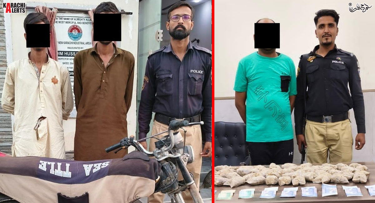 پہلی کارروائی : نیو کراچی انڈسٹریل ایریا پولیس کے ایس ایچ او کی صباء سینما چورنگی سیکٹر 5-گی میں کارروائی کرتے ہوئے دو ملزمان کو گرفتارکرلیا۔ جن کی شناخت دراب ولد کاشان اور نعمان ولد نعیم کے نام سے ہوئی۔ ملزمان کے خلاف تھانہ یوسف پلازہ میں مقدمہ الزام نمبر 140/2024بجرم دفعہ 381-اے درج کیا گیا۔ ایک موٹرسائیکل 70 سی سی کے ایل ایم-0448 میکر سپر اسٹار برآمد۔ ملزمان نے دوران انٹروگیشن انکشاف کیا کہ وہ سرقہ شدہ موٹرسائیکل پر وارداتیں کرتے ہیں اور اس سے قبل بھی گرفتار ہو چکے ہیں۔ موٹرسائیکلیں چوری کر کے حب چوکی بلوچستان لے جا کر بیچتے ہیں۔