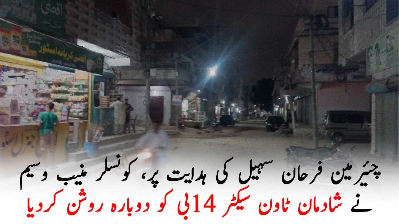 چئیرمین فرحان سہیل کی ہدایت پر، کونسلر منیب وسیم نے شادمان ٹاون سیکٹر 14-بی کو دوبارہ روشن کردیا