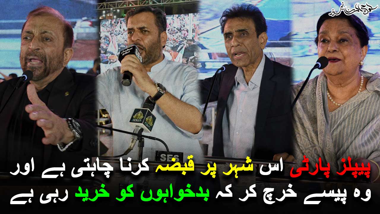 کراچی کو چھوڑ کرجو پورا پاکستان 16سو ارب کا ٹیکس دیتا ہے جبکہ کراچی تنہا 17سو ارب روپے کا ٹیکس دیتا ہے جب کہ سندھ کی حکومت صرف اپنے ڈسٹرکٹ کو صرف 10فیصد دیتی ہے جاگیر دارانہ جمہوریت کو ہم نہ جمہوریت سمجھتے تھے اور نہ سمجھتے ہیں،ہم پاکستان میں انتظامی یونٹ بنانا چاہتے ہیں اور ہم صرف پاکستان کو دھرتی ماں سمجھتے ہیں ہم سندھ کی تقسیم نہیں چاہتے بلکہ سندھ شہری اور دیہی کی خلیج کو ختم کرنا چاہتے ہیں اور اس کیلئے ہم اپنے حصے کی قربانی دے چکے ہیں اور جو کچھ ہمارے پاس تھا وہ لٹا چکے ہیں۔انہوں نے کہا کہ فلسطینیوں کے خلاف ہونے والے مظالم پر ہم کراچی والے اپنے حصے کی آوز لگا چکے ہیں اور اگر ضرورت پڑی تو مزید آواز حق بلند کرینگے۔