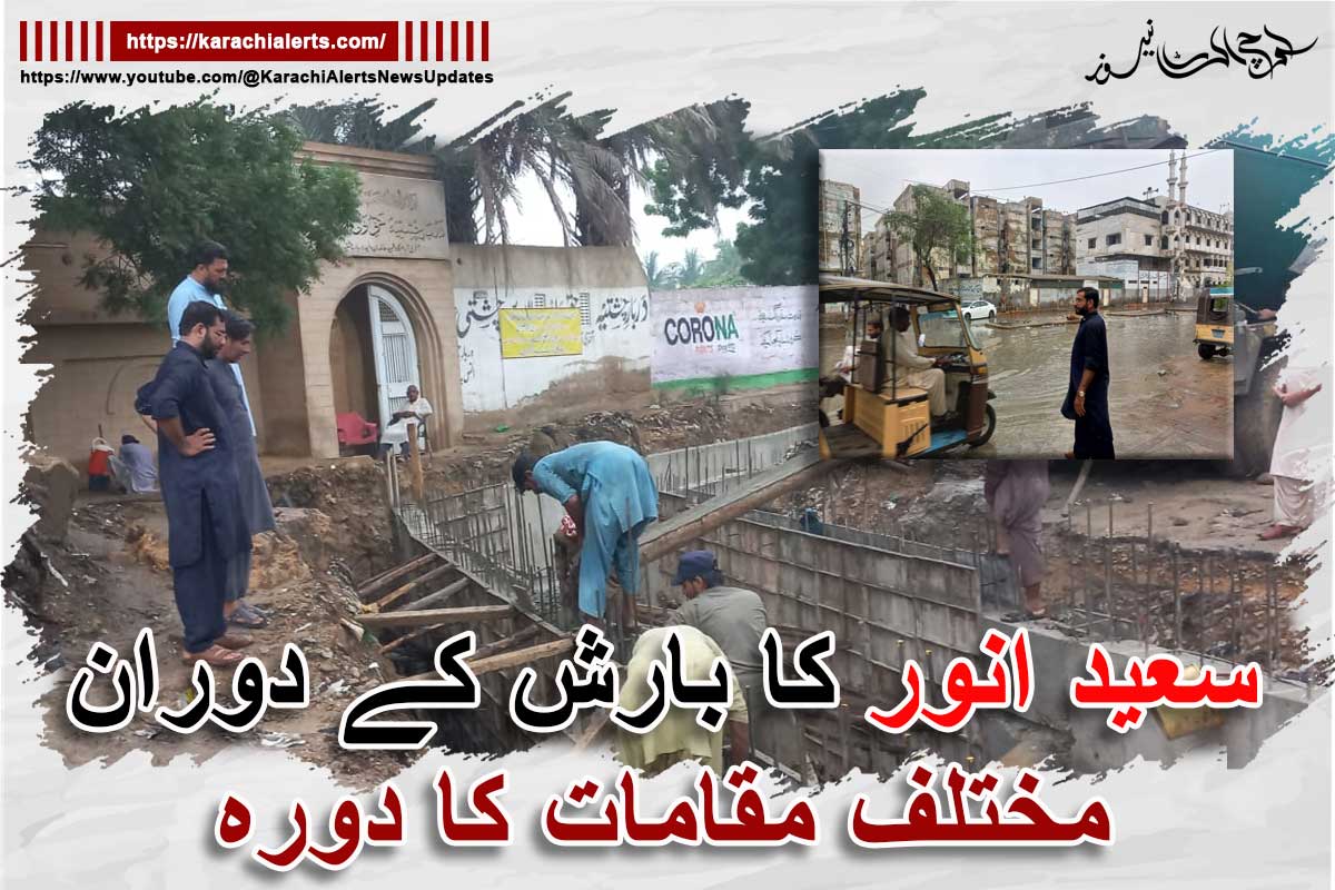 تفصیلات کے مطابق پاکستان تحریک انصاف ڈسٹرکٹ سینٹرل کے ڈپٹی انفارمیشن سیکریٹری و جنرل کونسلر وارڈ 2 یوسی 10 سعیدانورکا بارش کے دوران مختلف مقامات کا دورہ۔