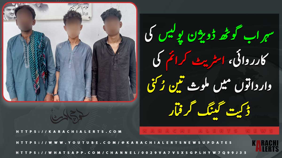 سہراب گوٹھ ڈویژن پولیس کی کارروائی، اسٹریٹ کرائم کی وارداتوں میں ملوث تین رُکنی ڈکیت گینگ گرفتار۔
