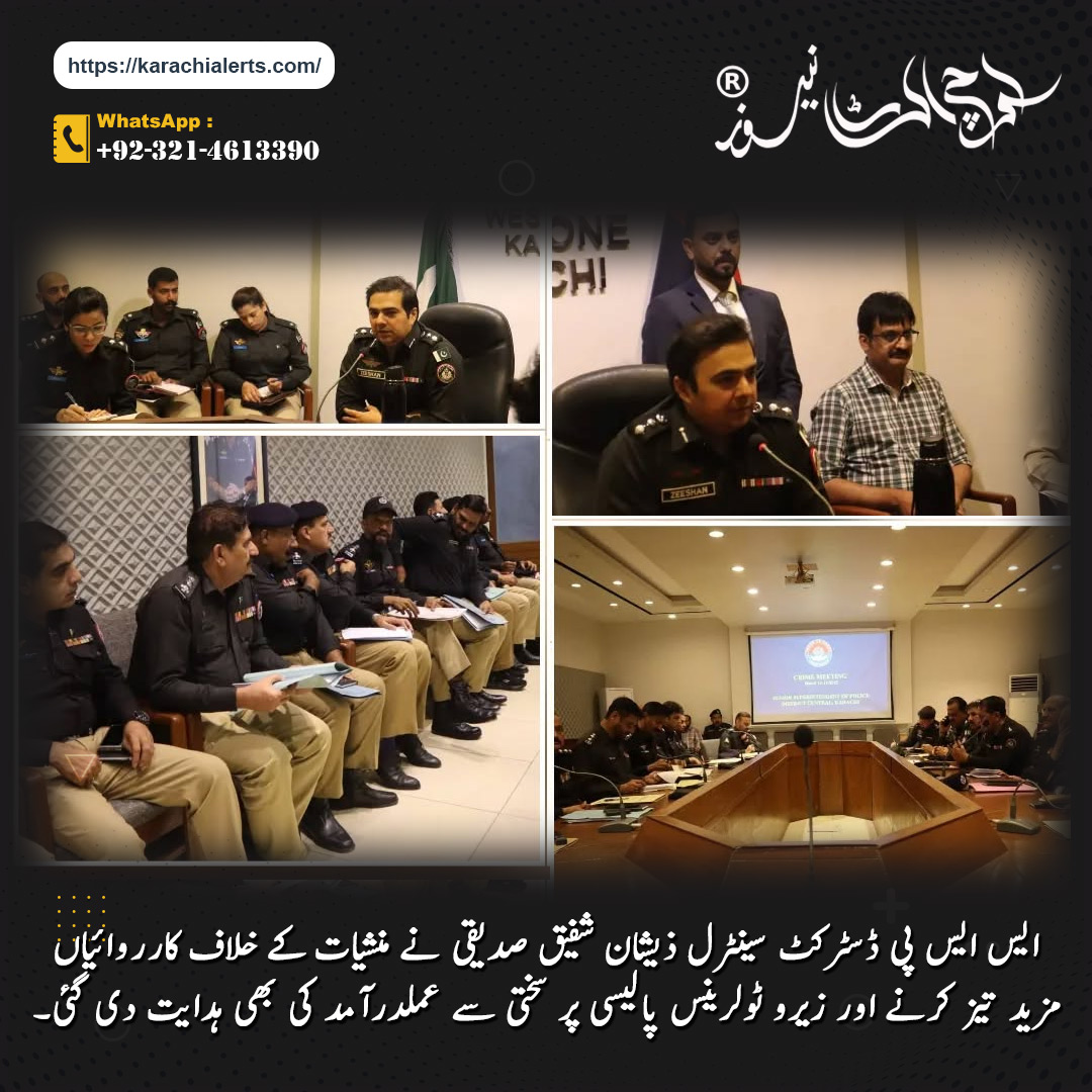 جناب ایس ایس پی ڈسٹرکٹ سینٹرل ذیشان شفیق صدیقی کی صدارت میں کانفرنس روم، ڈسٹرکٹ سینٹرل میں کرائم میٹنگ منعقد ہوئی۔ میٹنگ میں ایس ڈی پی اوز، سب ڈویژنل افسران، ایس ایچ اوز اور برانچ انچارجز نے شرکت کی۔