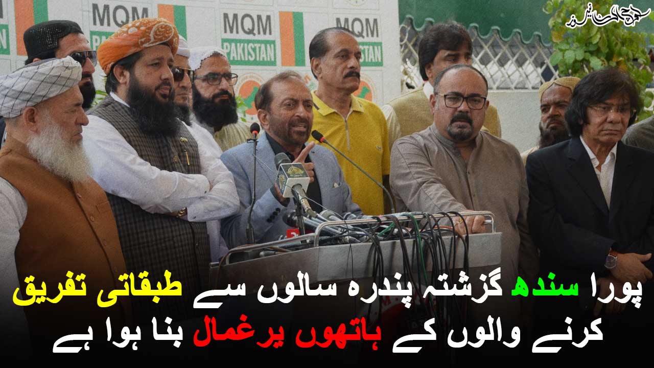 پورا سندھ گزشتہ پندرہ سالوں سے طبقاتی تفریق کرنے والوں کے ہاتھوں یرغمال بنا ہوا ہے۔ ڈاکٹر فاروق ستار