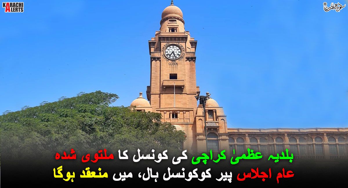 بلدیہ عظمیٰ کراچی کی کونسل کا ملتوی شدہ عام اجلاس پیر کوکونسل ہال، میں منعقد ہوگا