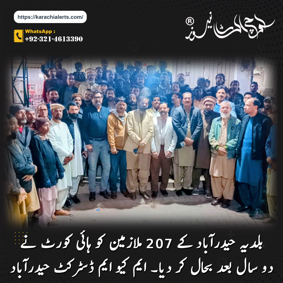 بلدیہ حیدرآباد کے 207 ملازمین کو ہائی کورٹ نے دو سال بعد بحال کر دیا۔ ایم کیو ایم ڈسٹرکٹ حیدرآباد