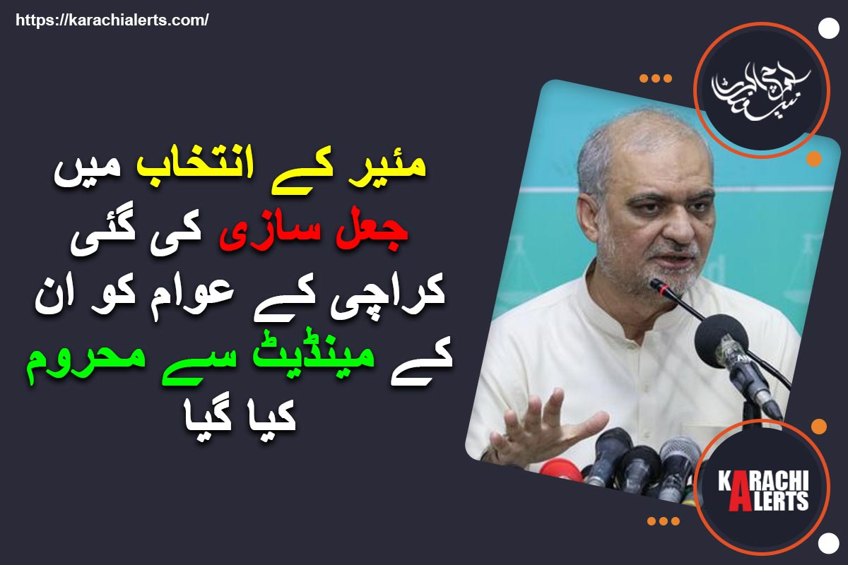 مئیر کے انتخاب میں جعل سازی کی گئی,کراچی کے عوام کو ان کے مینڈیٹ سے محروم کیا گیا۔ حافظ نعیم الرحمن