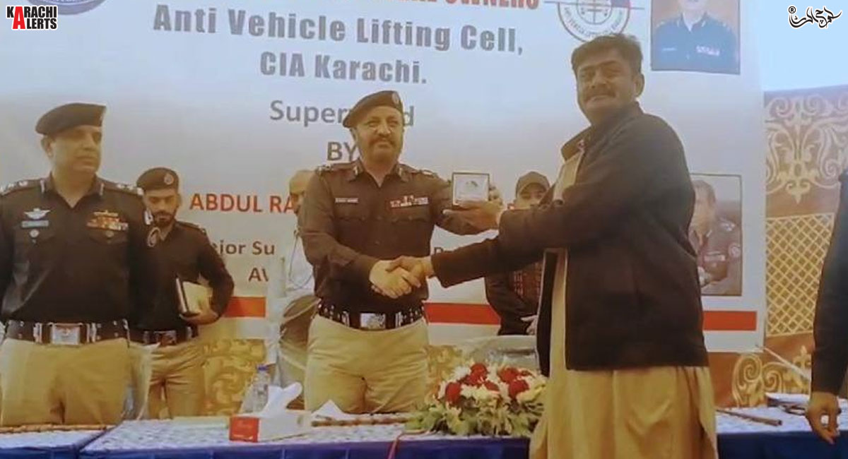 تفصیلات کے مطابق ایڈیشنل آئی جی کراچی جاوید عالم اوڈھو نے اینٹی وھیکل لفٹنگ سیل، شریف آباد میں کراچی کے مختلف علاقوں سے چوری و چھینی گئی قیمتی گاڑیوں کی برآمدگی کے بعد اصل مالکان کے سپرد کرنے کی تقریب میں بطور مہمان خصوصی شرکت کی۔ اس تقریب میں ڈی آئی جی سی آئی اے، ایس ایس پی اے وی ایل سی و پولیس کے دیگر سینئر افسران نے شرکت کی۔