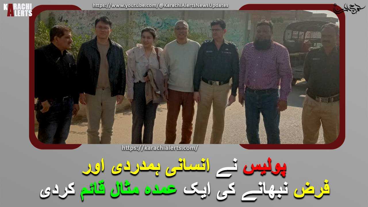 کراچی: ڈسٹرکٹ کورنگی پولیس نے انسانی ہمدردی اور فرض نبھانے کی ایک عمدہ مثال قائم کردی۔ باغ کورنگی روڈ پر سڑک کنارے کھڑے غیر ملکی باشندوں کو پولیس نے منزل تک پہنچایا۔