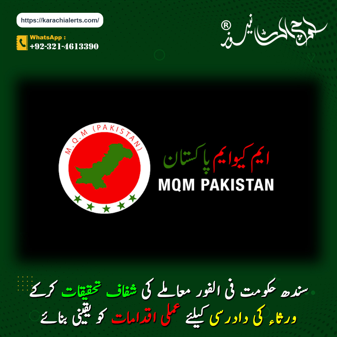 سندھ حکومت فی الفور معاملے کی شفاف تحقیقات کرکے ورثاء کی دادرسی کیلئے عملی اقدامات کو یقینی بنائے۔ متحدہ ترجمان