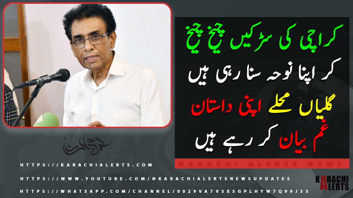 کراچی کی سڑکیں چیخ چیخ کر اپنا نوحہ سنا رہی ہیں گلیاں محلے اپنی داستان غم بیان کر رہے ہیں۔ ڈاکٹر خالد مقبول صدیقی