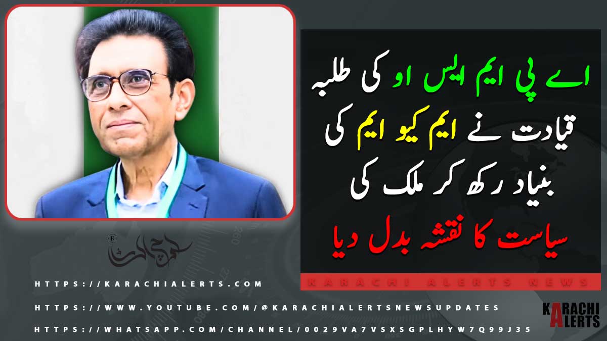 اے پی ایم ایس او کی طلبہ قیادت نے ایم کیو ایم کی بنیاد رکھ کر ملک کی سیاست کا نقشہ بدل دیا۔ خالد مقبول صدیقی