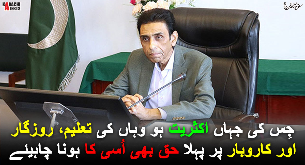 جِس کی جہاں اکثریت ہو وہاں کی تعلیم، روزگار اور کاروبار پر پہلا حق بھی اُسی کا ہونا چاہیئے۔ ڈاکٹر خالد مقبول صدیقی