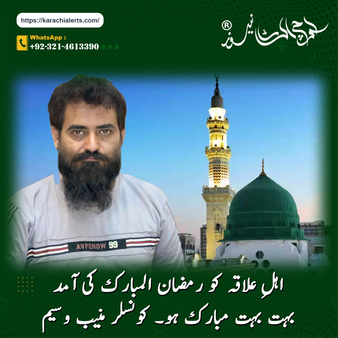 اہلِ علاقہ کو رمضان المبارک کی آمد بہت بہت مبارک ہو۔ کونسلر منیب وسیم